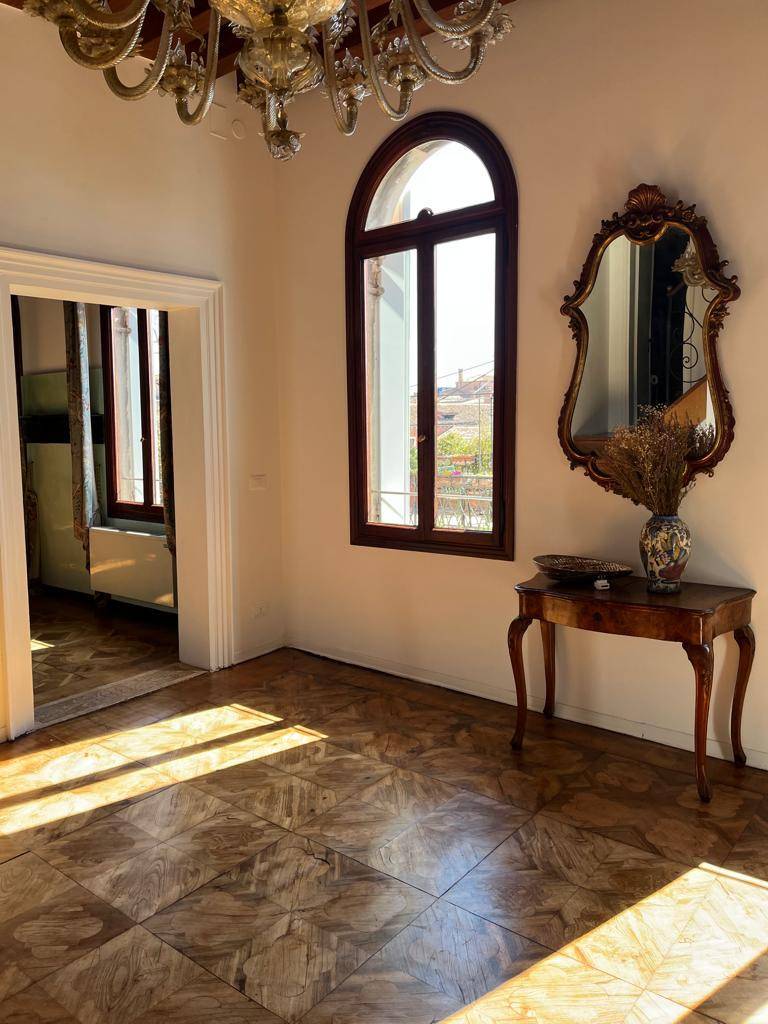Proponiamo splendido appartamento ideale per rappresentanza con una magnifica terrazza di 60 mq. Disposto al terzo e quarto piano con accesso esclusivo e comodo ascensore. L'appartamento è situato nelle immediate vicinanze di Piazza San Marco gode di un'ottima luminosità e una meravigliosa vista aperta su quattro lati. Le finiture sono di pregio e curate in ogni dettaglio. Pavimento in parquet intarsiato e le porte in legno risalenti al 1860,. La proprietà è composta da una ampia zona living con accesso diretto alla splendida terrazza da cui si gode una vista mozzafiato fino al campanile di San Marco, uno studio, tre camere, due delle quali mansardate con splendido soffitto in legno e con vista panoramica che si apre sulla laguna e il Lido di Venezia, tre servizi, un magazzino al piano terra.